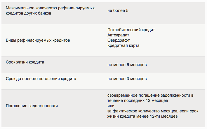 Сбербанк предлагает воспользоваться объединением кредитов со следующими условиями: