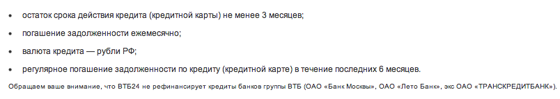 Требования банка ВТБ-24 для услуги рефинансирования кредитов: